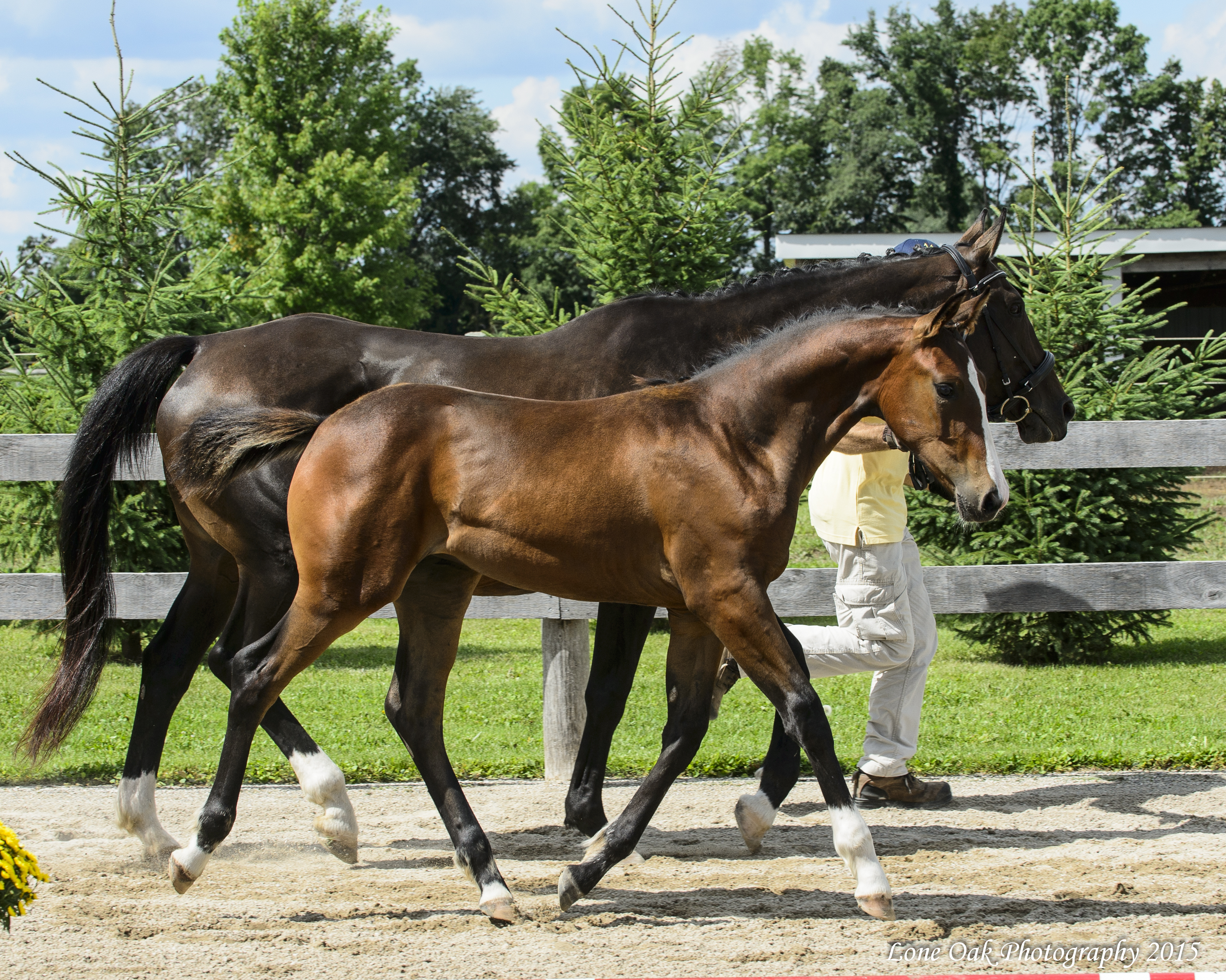 Her dam Sanszi was sired by the Hanoverian Stallion Santano who was licensed in 1995 and purchased by the Celle State stud. He completed his 300 day stallion performance test at Adelheidsdorf with an excellent dressage score of 131.37 points (3rd in dressage). He was then sold and imported to the US, where he was developed through the Grand Prix levels. Santano’s Sire Sao Paulo was still active breeding at the Celle State Stud until his death in 2017. Sanszi’s maternal grandsire Domingo was also competed up to the Grand Prix levels in the US by Hilda Gurney, achieving very good scores, before continuing this success under another rider.