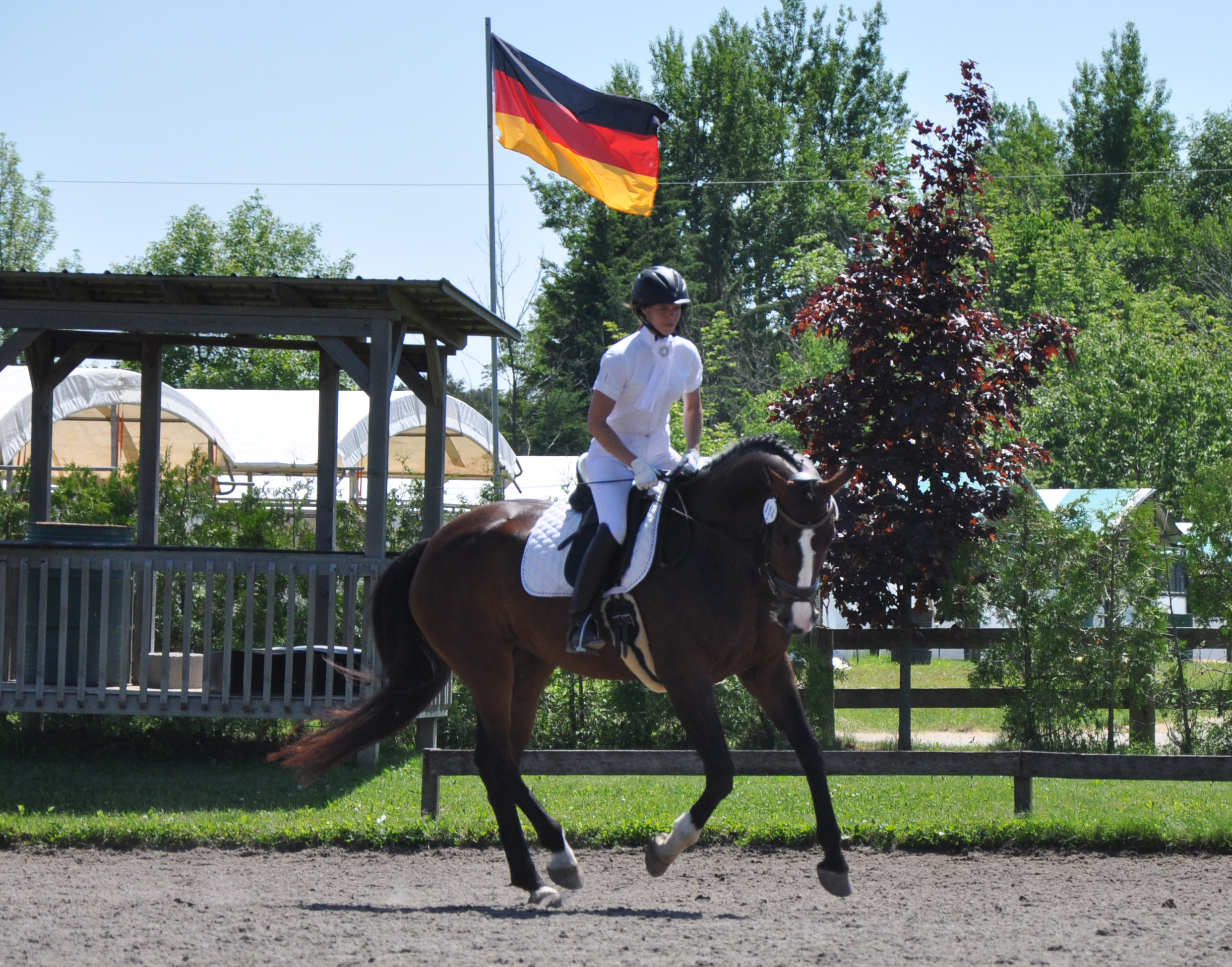 Sanssouci was lightly started as a 3 year old and has been in professional training for the past year and has been trained according to the training scale. She is a very talented mare that is ready to start her show career.